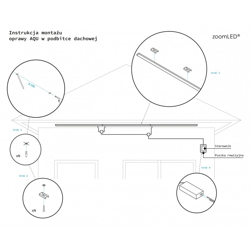 *pod AQU sugerujemy wklejenie kanału kablowego 15/17 dzięki czemu AQU idealnie licuje się z linią elewacji