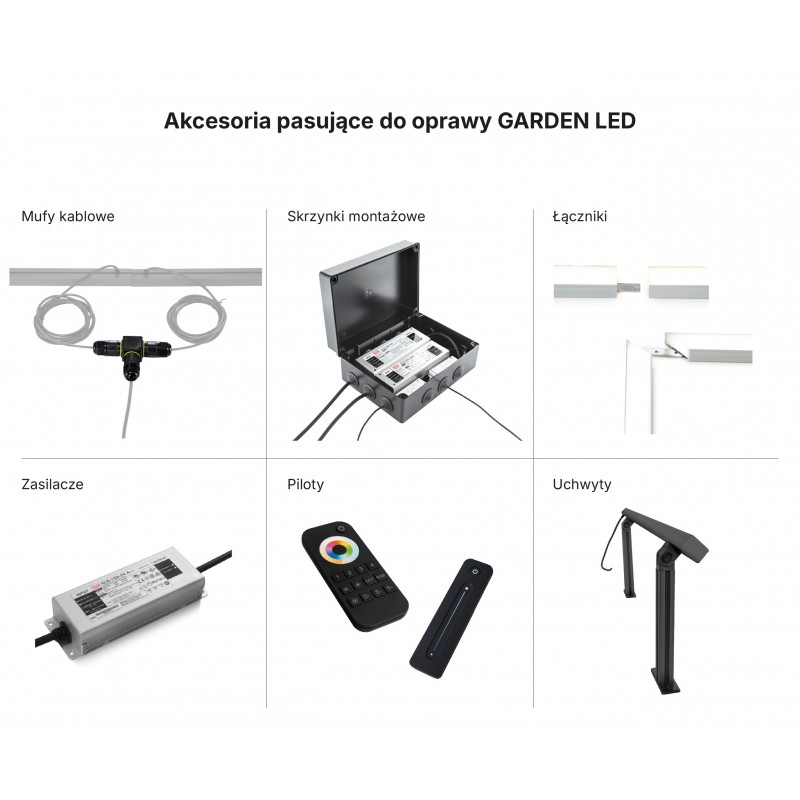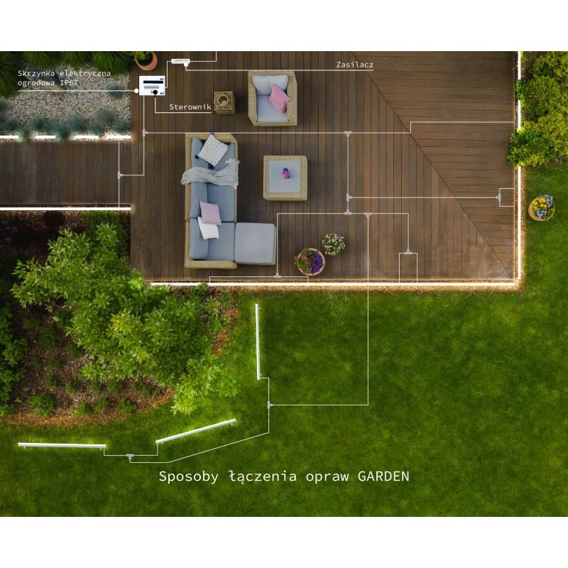• Do działania oprawy LED GARDEN potrzebny jest zasilacz 24V (sprzedawany osobno)