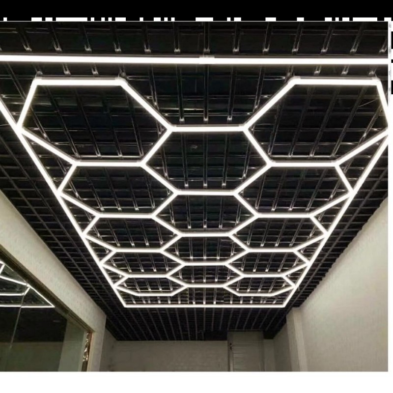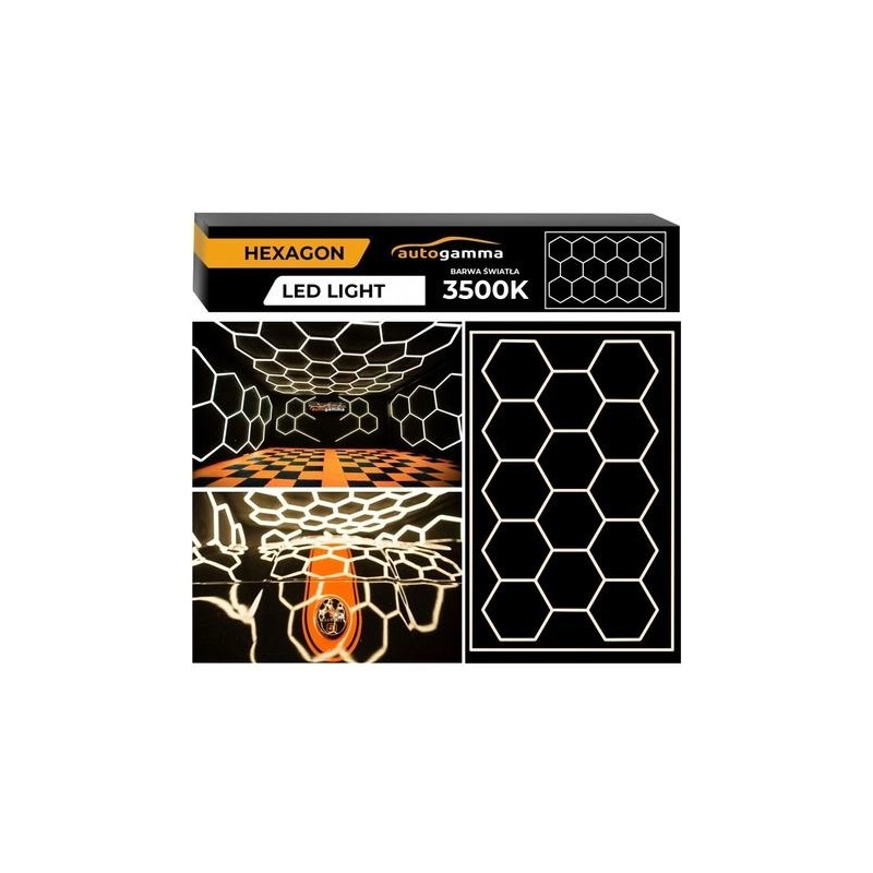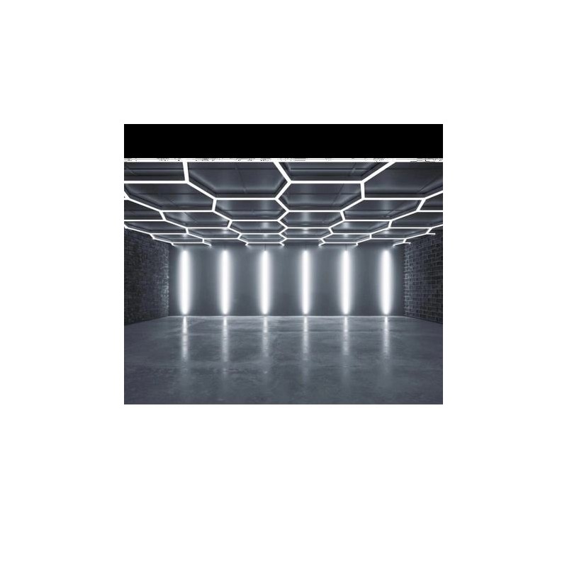 System HEXAGON LED doskonale sprawdza się w salonach samochodowych, studiach detailingowych, garażach, warsztatach, showroomach, biurach, sklepach oraz przestrzeniach kreatywnych. Barwa światła 3500K (biała ciepła) tworzy przyjazną atmosferę, jednocześnie zapewniając dobrą widoczność i naturalne odwzorowanie kolorów. Duży wymiar zestawu – 243 × 483 cm – pozwala na oświetlenie większych powierzchni bez konieczności stosowania dodatkowych opraw.