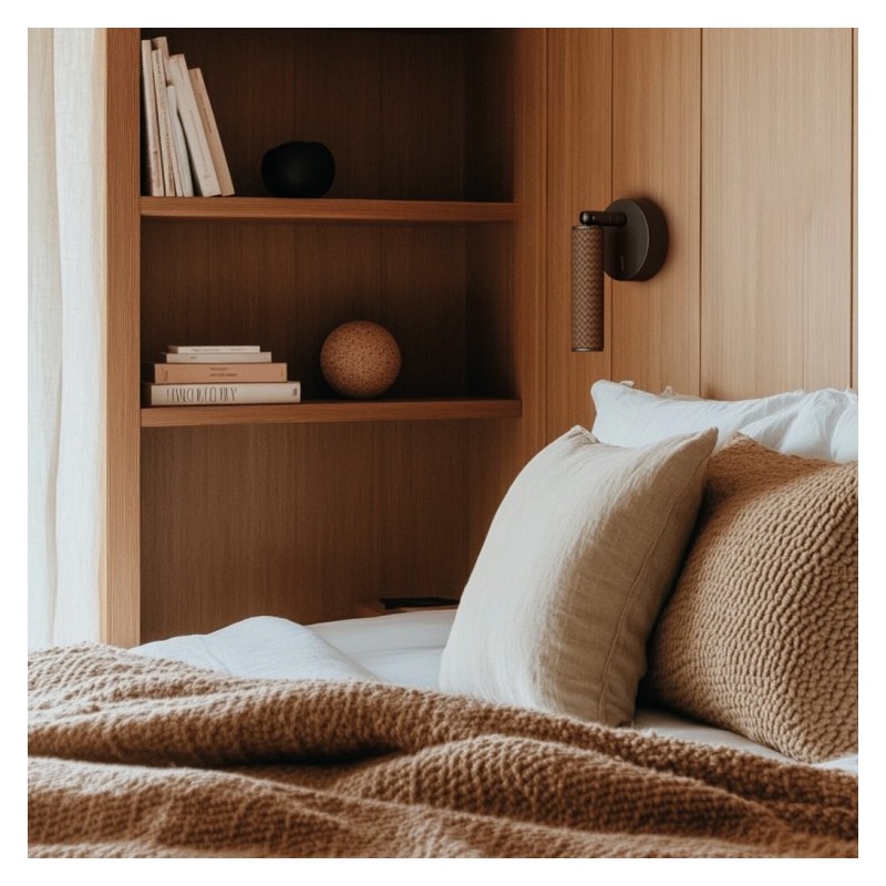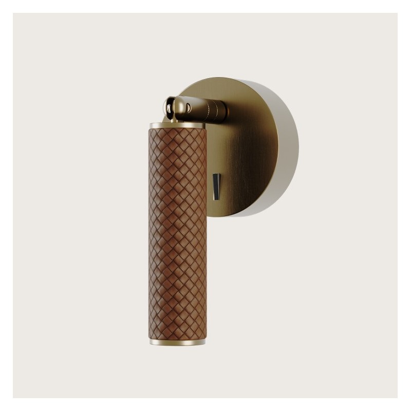 Kinkiet Coco Aromas to nowoczesna lampa ścienna o minimalistycznym designie, łącząca metal z eleganckim wykończeniem skórzanym.