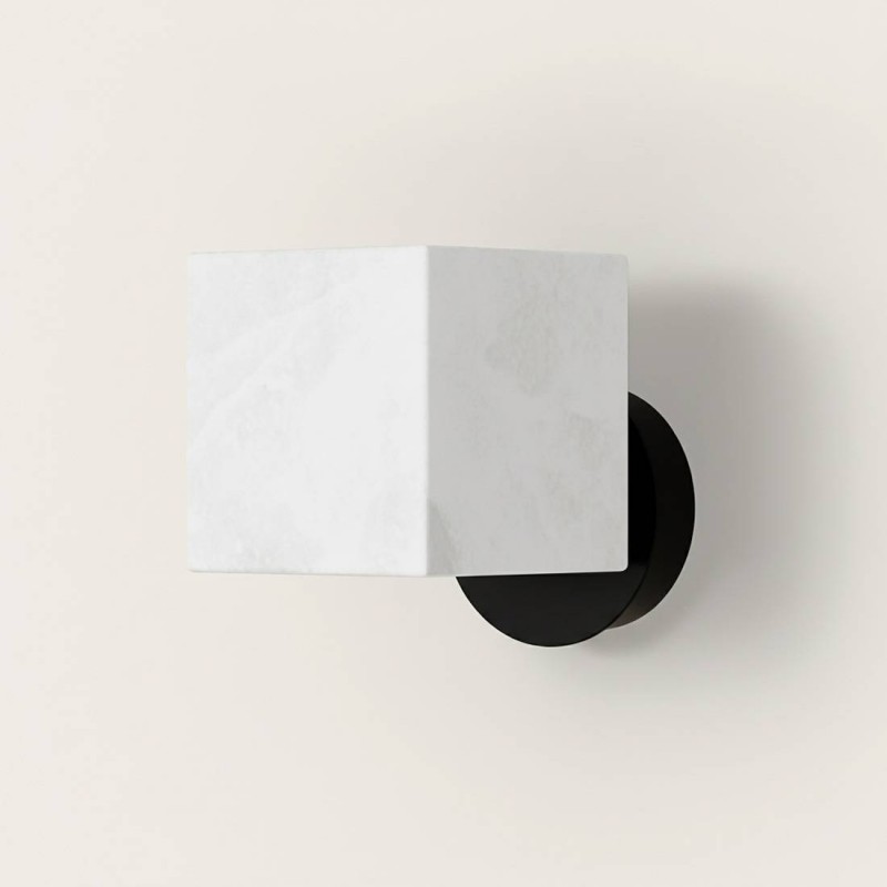 Kinkiet Cubic Aromas to elegancka lampa ścienna z alabastrowym kloszem i metalową oprawą, dostępna w kolorze czarnym matowym lub starym złocie.