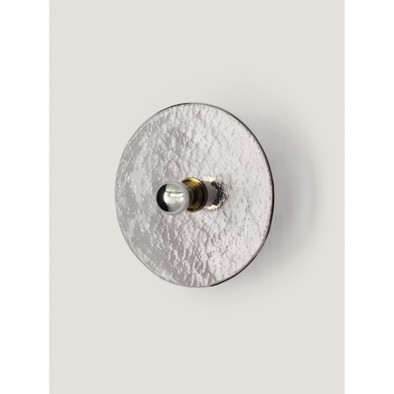 Kinkiet NOLD od Aromas del Campo to elegancka lampa ścienna o minimalistycznym designie, łącząca metalowe mocowanie z dekoracyjnym szklanym dyskiem. Dostępna jest w różnych wykończeniach kolorystycznych szkła i metalu, co pozwala dopasować ją do nowoczesnych wnętrz.