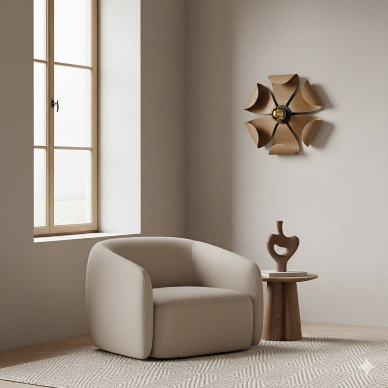 Kinkiet idealny do nowoczesnych wnętrz – minimalistyczna forma z dekoracyjnymi „płatkami” ze stali.