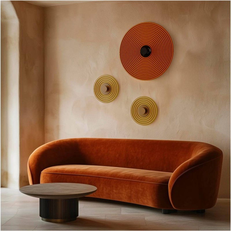 Dysk z materiału akustycznego dostępny w kolorach z palety Aromas (personalizacja możliwa na zamówienie) w tym celu proszę o kontakt ze sklepem : info@swiatloilampy.pl lub zaznaczyć przy zamówieniu w uwagach kolor z załącznika palety kolorów Aromas