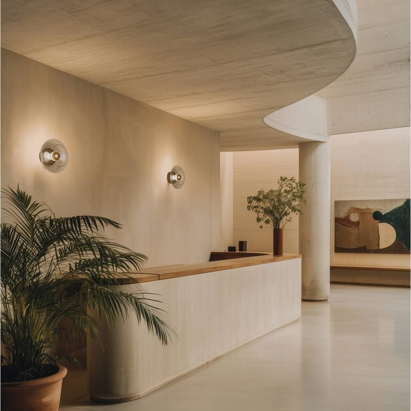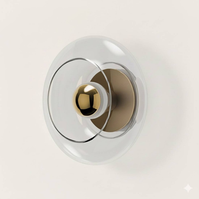 Minimalistyczna forma łącząca czarny matowy metal lub złoty matowy metal z przezroczystym szkłem.