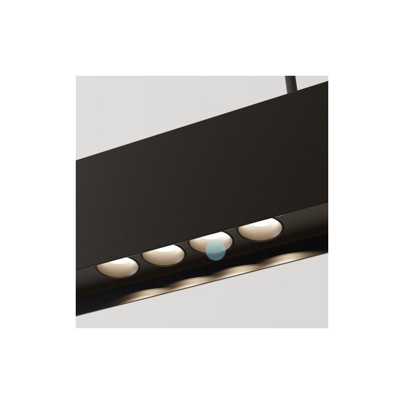 Oprawa ma wiszącą konstrukcję z widocznym zawiesiem (do 1800 mm długości), co nawiązuje do surowych, loftowych przestrzeni.