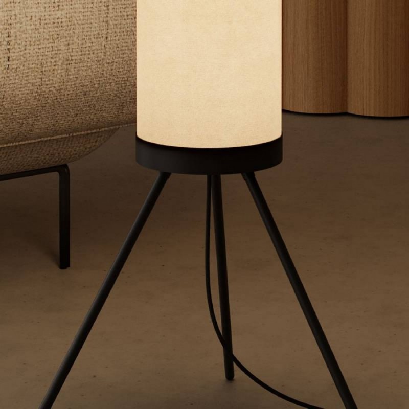 Smukła forma z cylindrycznym abażurem w jasnym odcieniu, który daje miękkie, rozproszone światło.