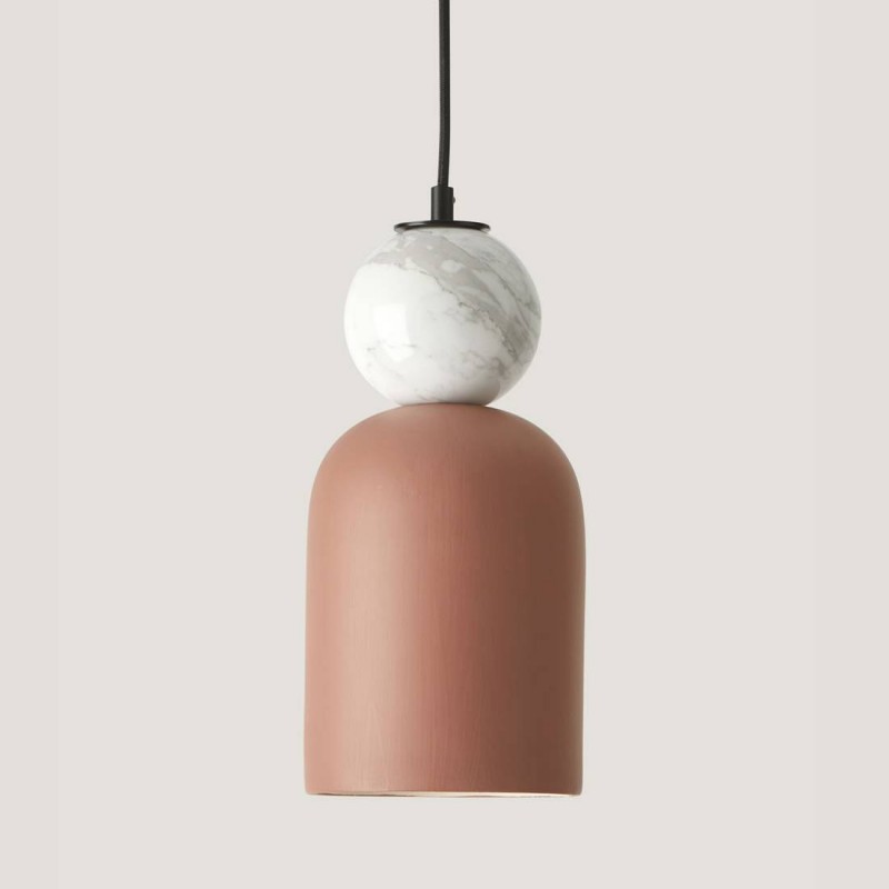 Lampa wisząca Bell C1084 od Aromas Del Campo to elegancka oprawa z ceramicznym kloszem i dekoracyjnym elementem z naturalnego marmuru.