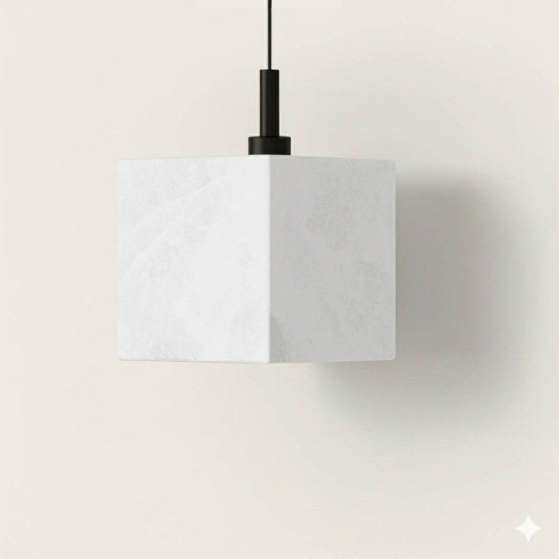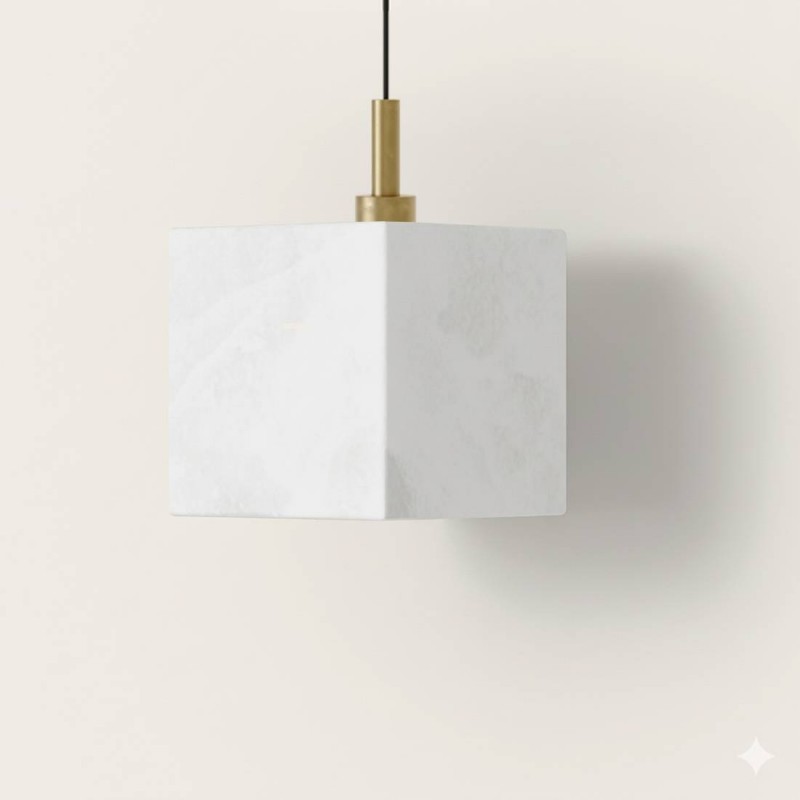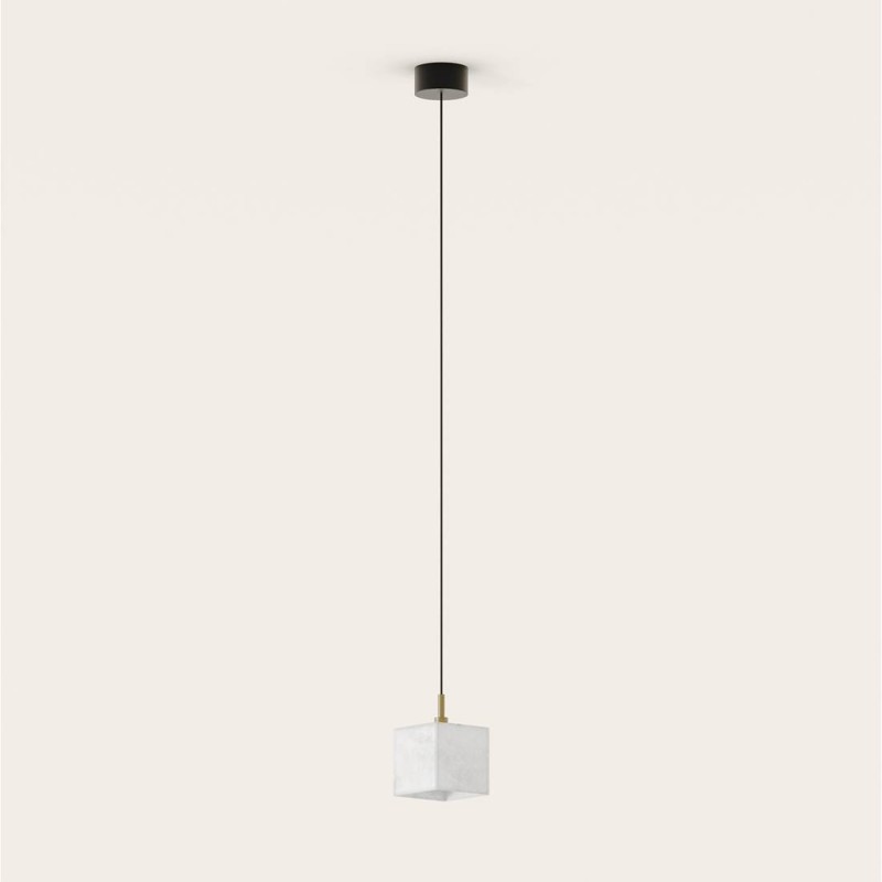 Lampa wisząca Cubic Aromas to elegancka lampa wisząca z alabastrowym kloszem i metalową oprawą, dostępna w kolorze czarnym matowym lub starym złocie.