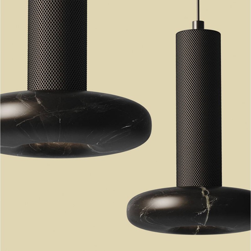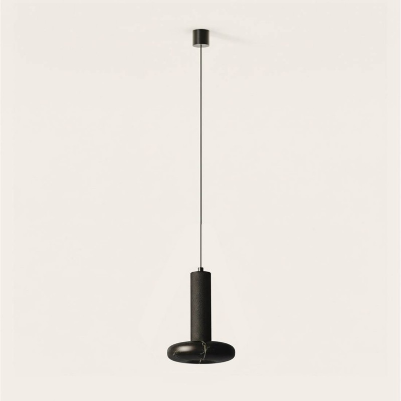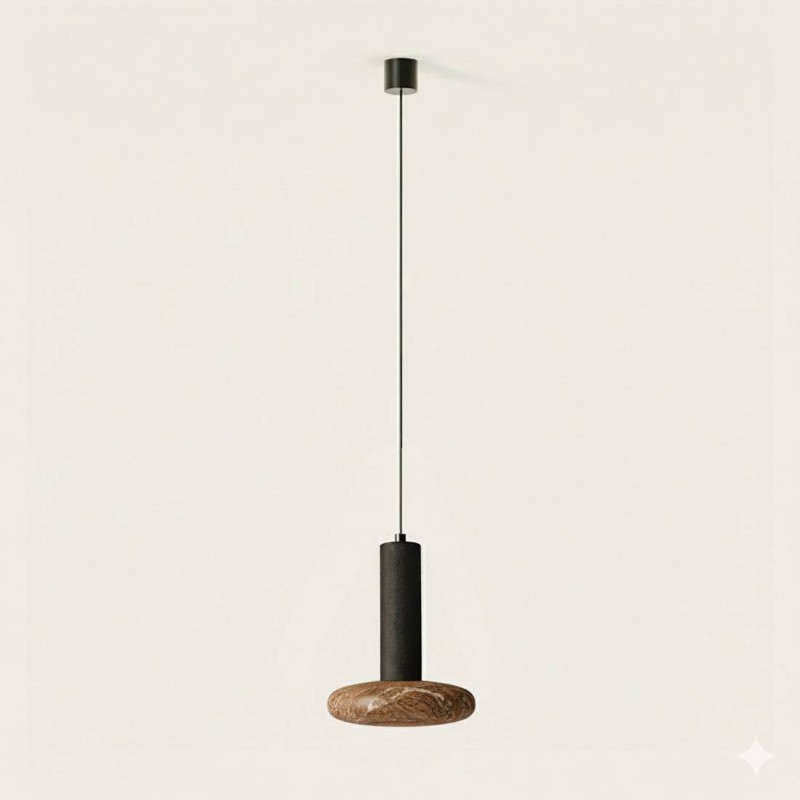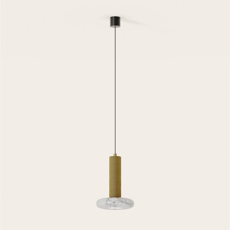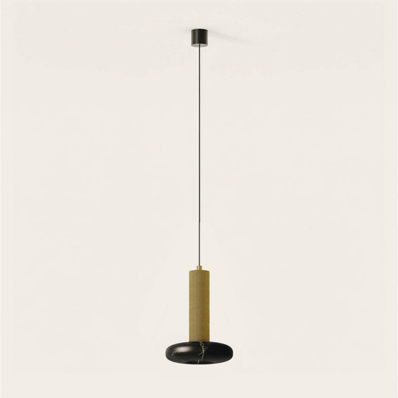 Lampa wisząca Aromas HULO to elegancka oprawa łącząca marmur i metal, zaprojektowana przez Pepe Fornása. Dostępna jest w kilku wariantach kolorystycznych marmuru (biały, czarny, zielony, brązowy) oraz w wykończeniu metalu: matowa czerń lub postarzane złoto.