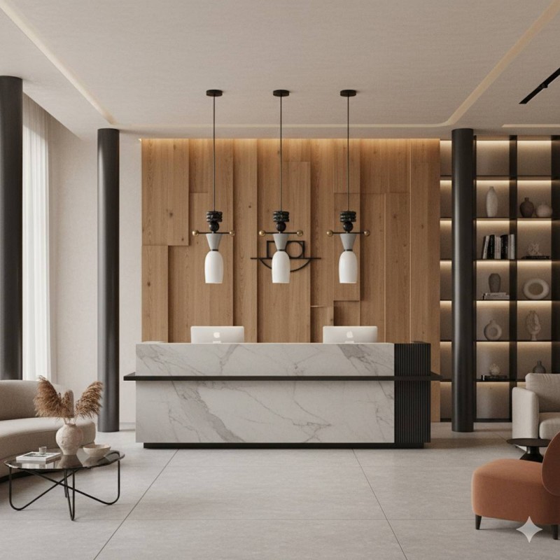 Dzięki marmurowym detalom i minimalistycznej formie świetnie wpisuje się w styl nowoczesny, loftowy i elegancki.