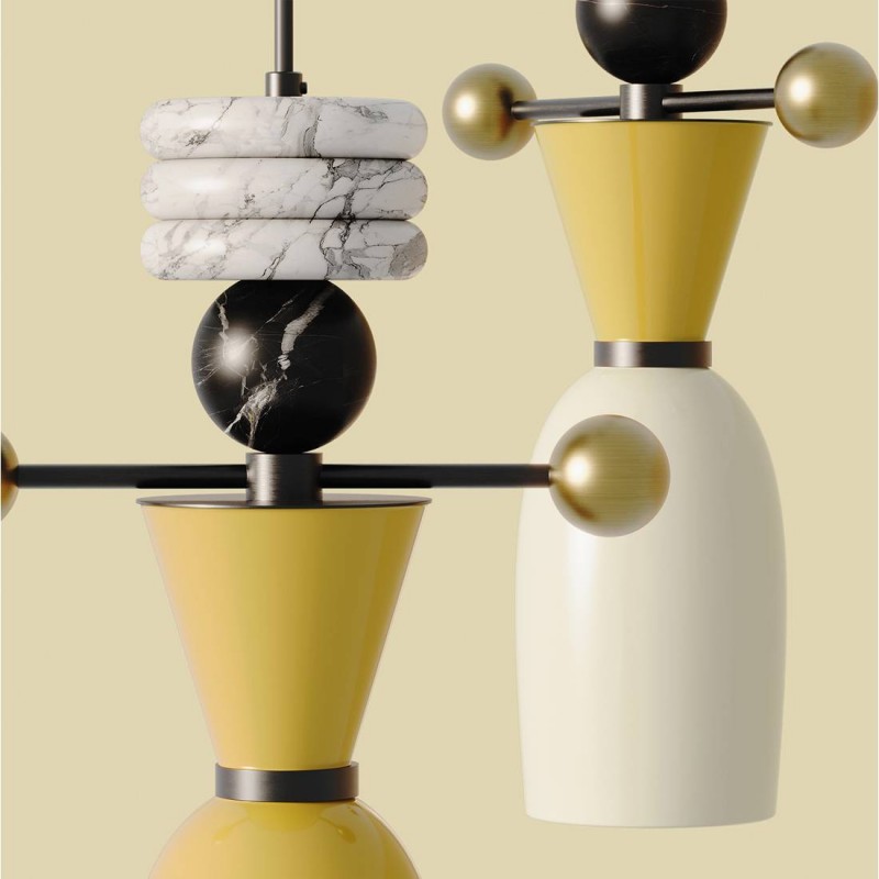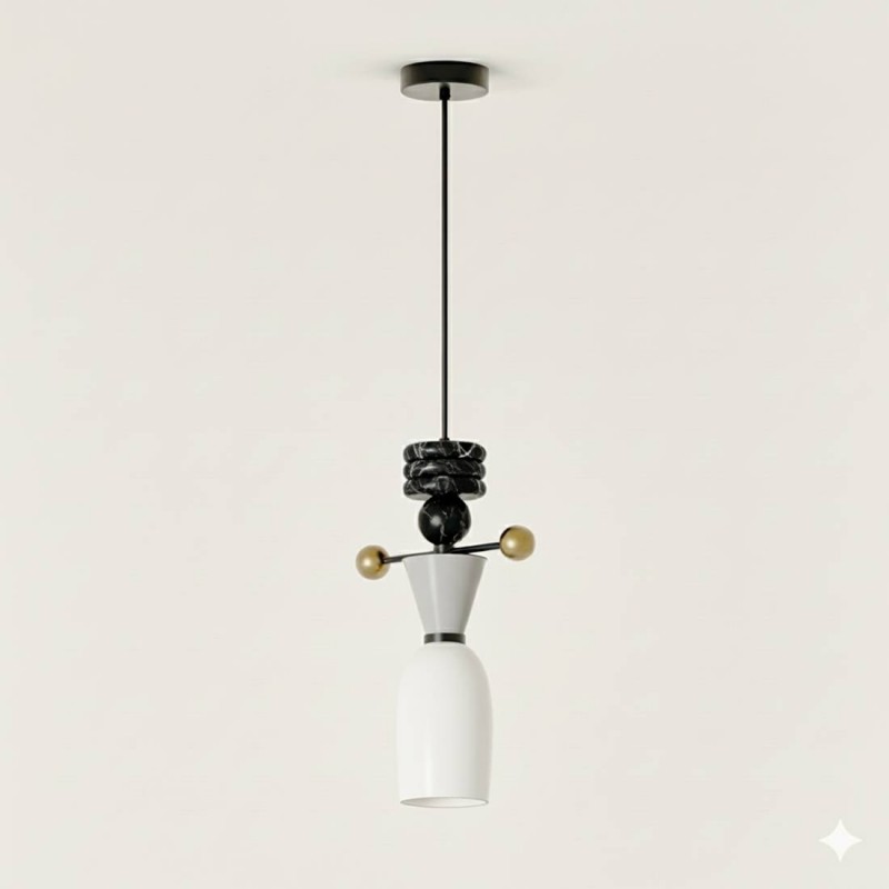 Lampa wisząca Aromas NURO to elegancka oprawa hiszpańskiej marki Aromas del Campo, łącząca marmur, szkło i metal w minimalistycznej formie. Jest dostępna w kilku wariantach kolorystycznych marmuru i szkła, co pozwala na dopasowanie jej do różnych wnętrz.