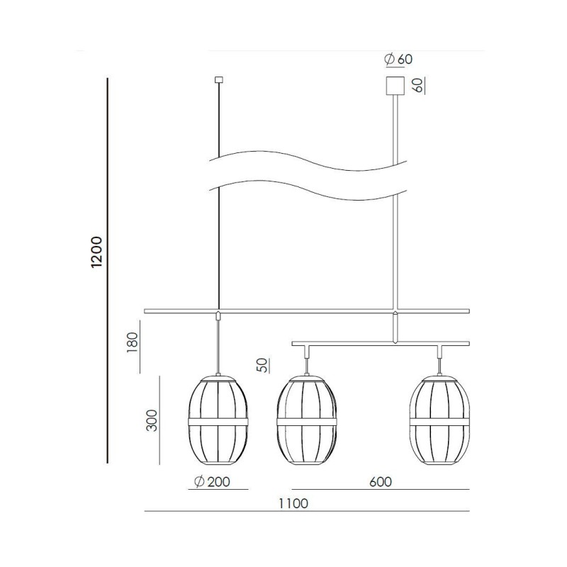 Lampa potrójna, idealna nad stół lub wyspę kuchenną.