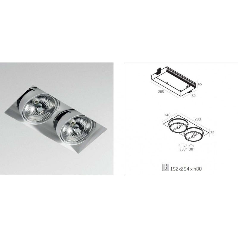 Multiva EVO — dostępne są wersje z ramką (Trim) i bez (Trimless), w różnych rozmiarach i konfiguracjach źródeł światła. Model 115x2 QR111 to większa oprawa, przeznaczona do zastosowań wymagających mocnego, kierunkowego światła (typ QR111 jest często używany w ekspozycjach, galeriach, punktowym oświetleniu).