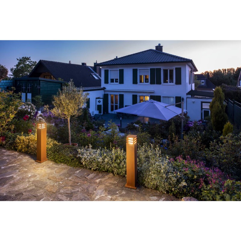 Słupek ogrodowy SLV RUSTY SQUARE 70 to wyjątkowa oprawa zewnętrzna, która łączy nowoczesne wzornictwo z naturalnym, surowym charakterem stali Corten. Materiał ten z czasem pokrywa się szlachetną patyną, dzięki czemu każdy egzemplarz zyskuje indywidualny wygląd i doskonale komponuje się z zielenią ogrodu, nowoczesną architekturą oraz przestrzeniami utrzymanymi w stylu industrialnym.