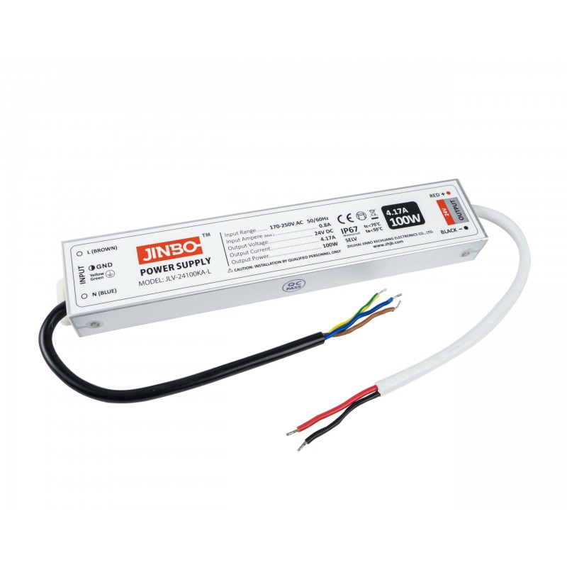 24V – napięcie wyjściowe zasilacza, zgodne z taśmami LED 24‑voltowymi.