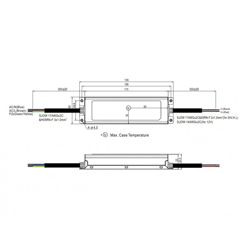 • Zastsowany przewód wyjściowy : 2 żyłowy przewód z podwójną izolacją